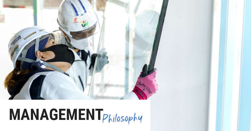 成長の新たな取り組みとして、他のガラス工事店ではないような、開口部の提案を設計・施工で提案できる部署の設立。そして、ベトナム ハノイに駐在員事務所を設立しました。これまで国内メーカーだけでなく、中国、台湾、韓国、シンガポールなど様々な国のガラスを現場に合わせて提案してきました。今後は、ベトナムの新たな取引きメーカーと新しい部署も加え、竹甚にしかできない提案をさらに追求し、お客様満足のさらなる向上を目指していきます。