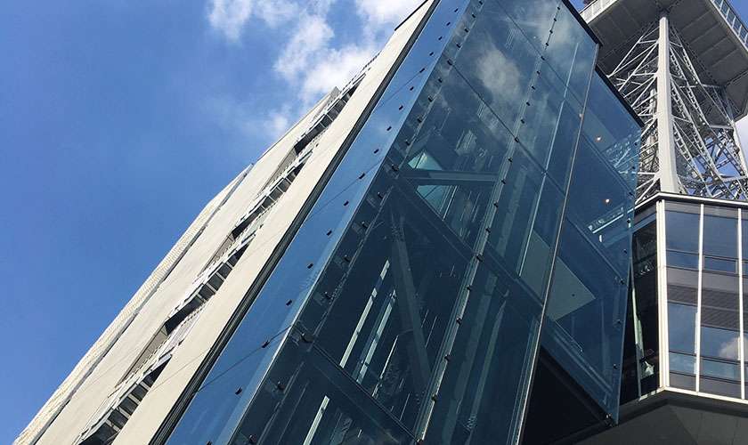 名古屋駅のランドマークタワー、ミッドランドスクエア。 多種多彩な大型ガラスがふんだんに用いられています。